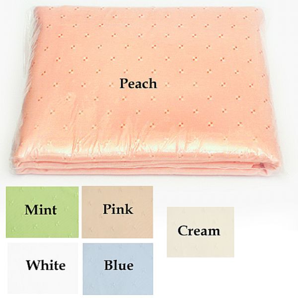 Polyester weave fabric, “Scotchguarded”. (Machine washable, commercial grade) shower curtains come with buttonholes in the top to hang on the hooks.
